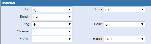 • Cone: Select the cone material. The contents of this list are populated by the administrator in Designer under PreferencesCustom CodesSCONEMT.